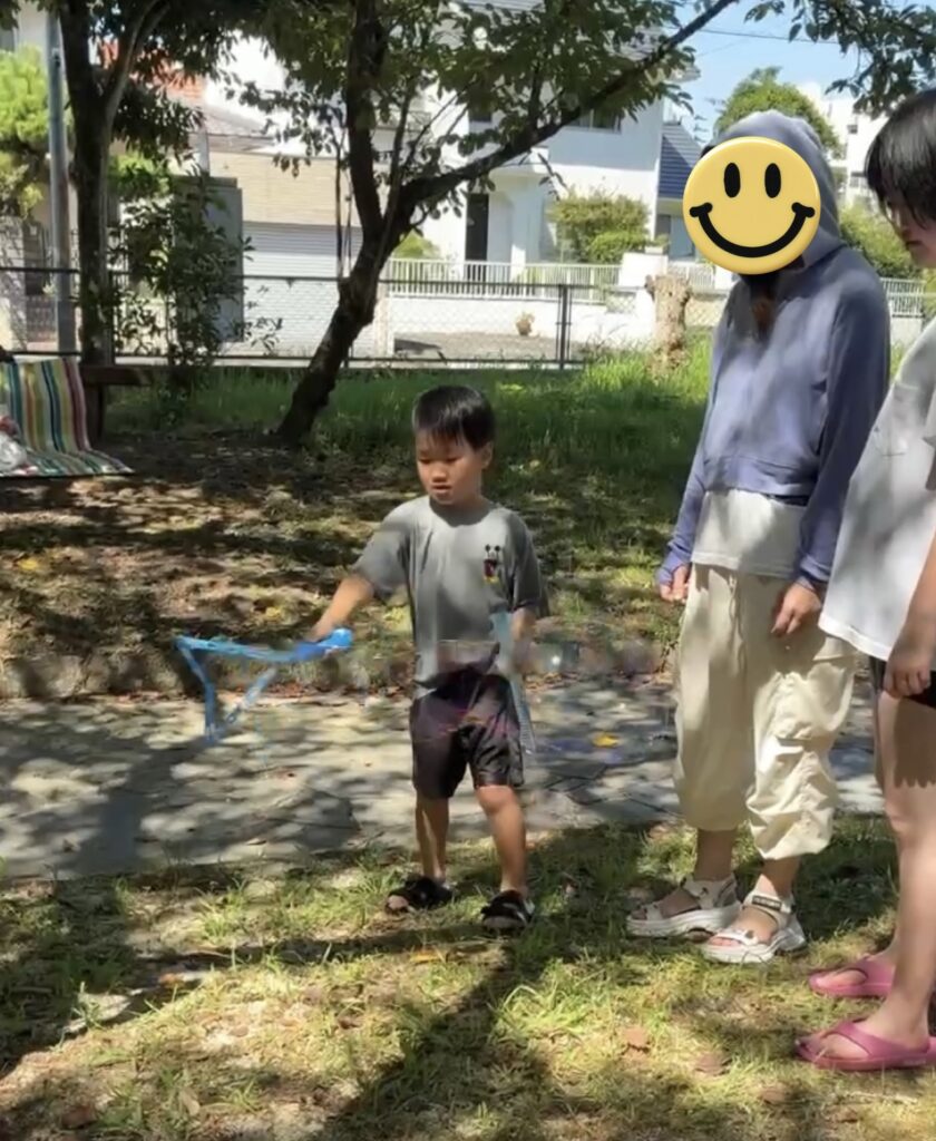 シャボン玉遊びを楽しむ子