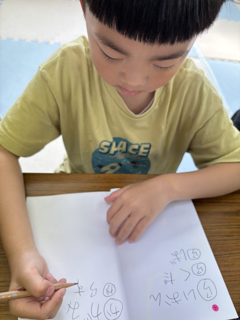 ⭐️小学生さんは、慣れ親しんだ自分の名前を使い、一文字ずつ、単語を考えます🤔