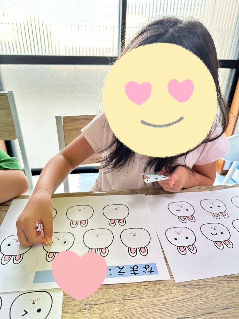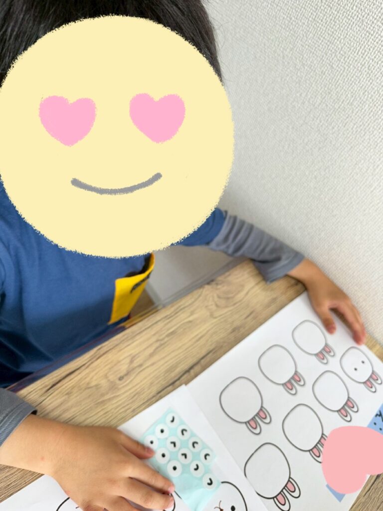 お手本を見ながら小さなシールを丁寧に貼るという案内難しい作業でしたが、みんな一生懸命に取り組んでいました⭐︎