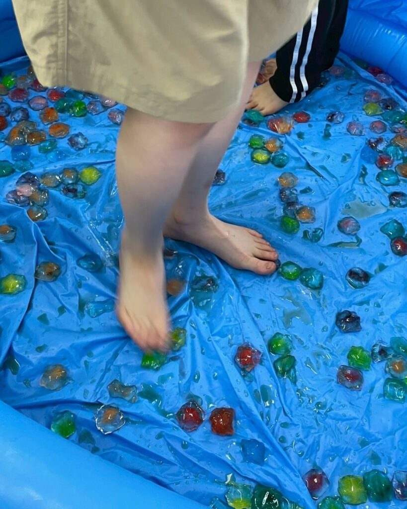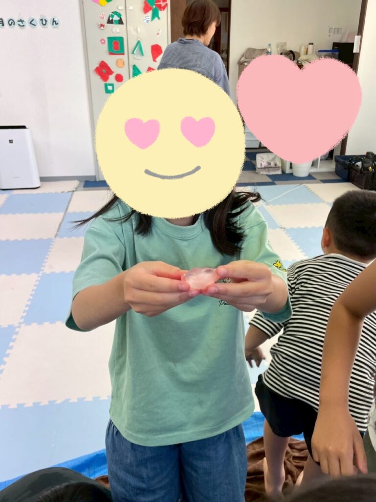 冷たさや形を目や手、足で感じます🧊