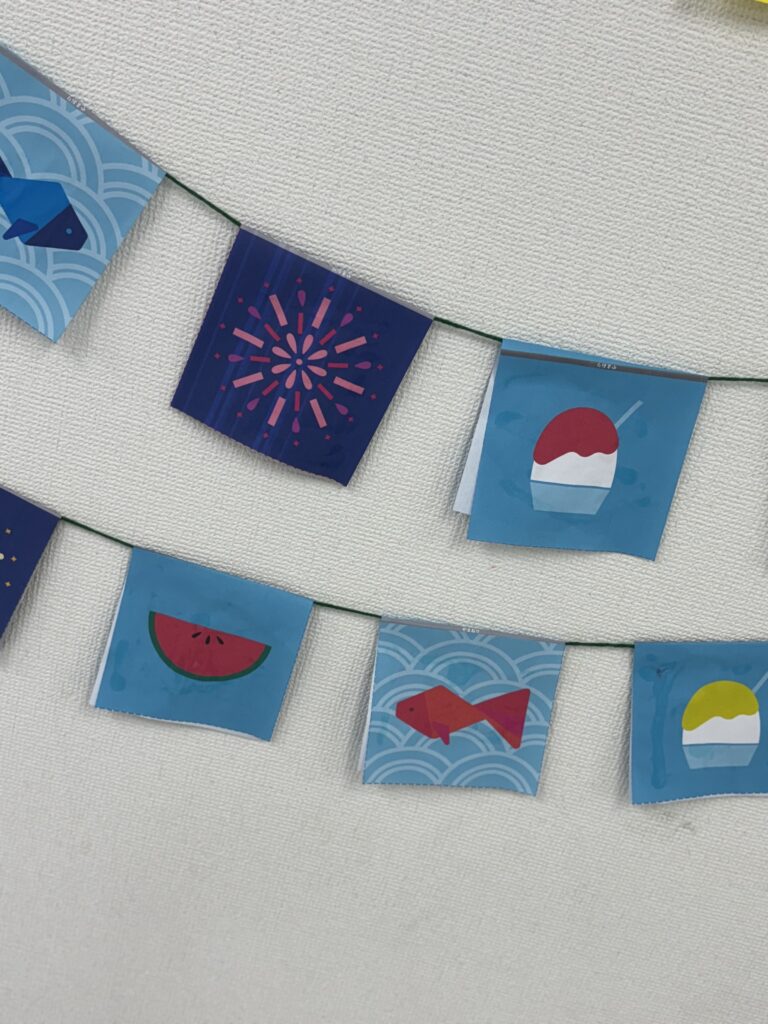 🏮夏祭りの準備を通して、友だちと協力してひとつのものを作り上げる達成感を得る。