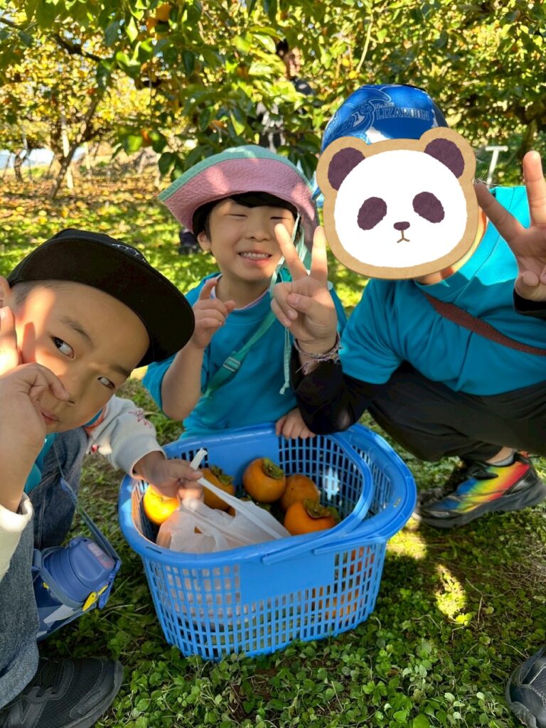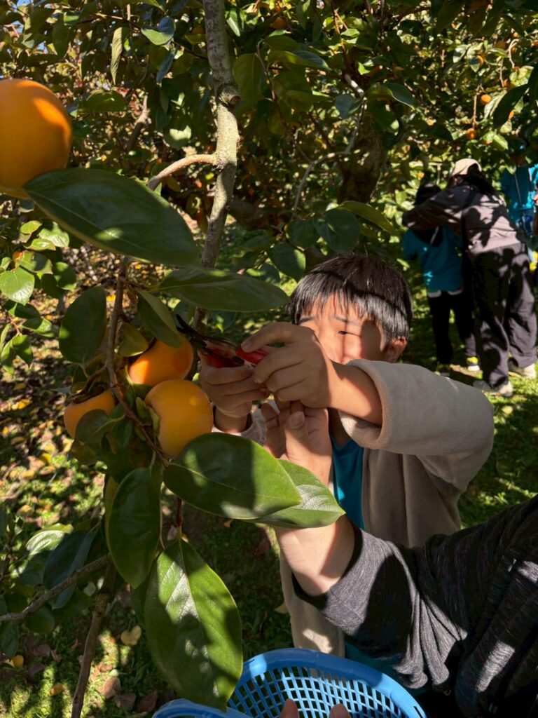 収穫した柿を握りしめている可愛い姿もみられ🥹