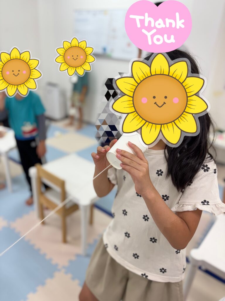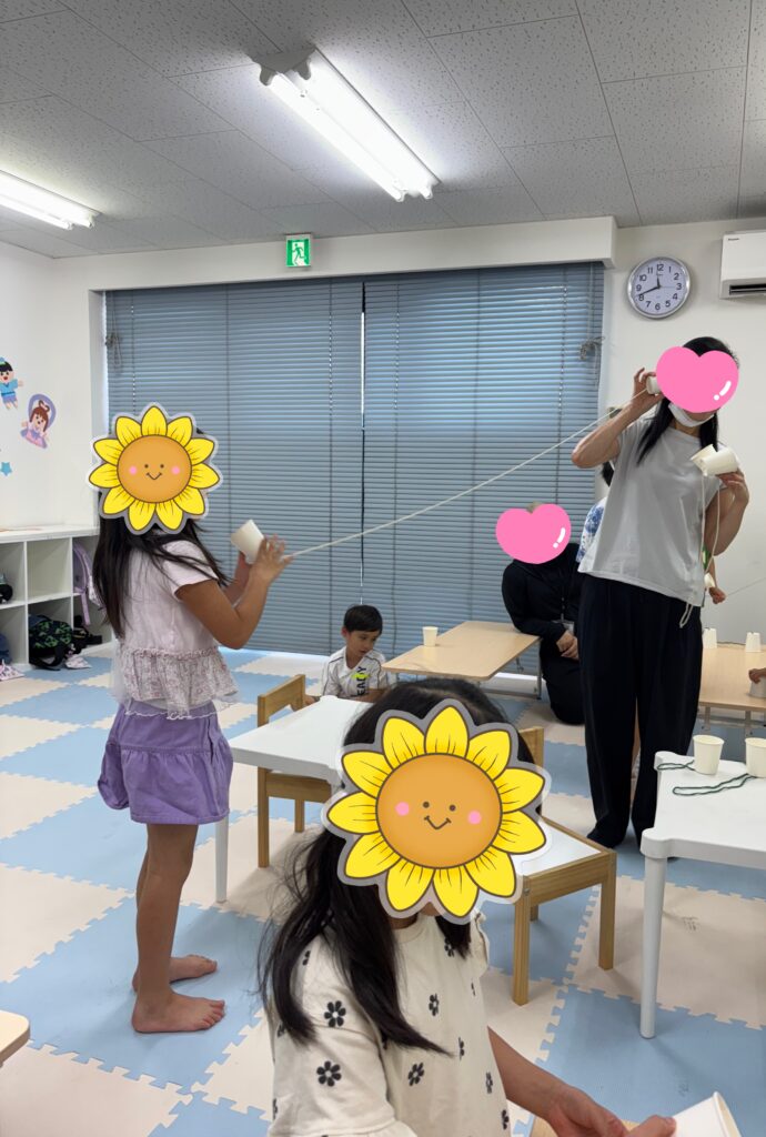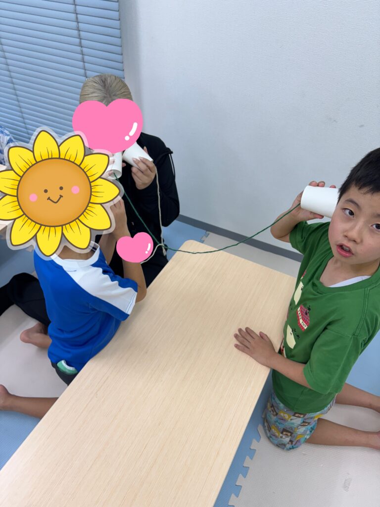 そこで、自分の話している声の大きさを意識する機会として今日は【糸電話】をしてみました👂